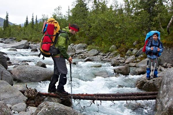 Focus and attunement: “Crossing a river by a fallen tree.” Photo by Dmitriy Markov on Wikimedia Commons. |