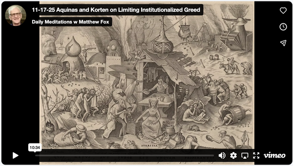 Limiting Institutionalized Greed By Matthew Fox 11/17/2025