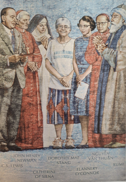 Banner Image: John Nava's tapestry for the East Wall depicts C.S. Lewis, John Henry Newman, Dorothy Mae Stang, Flannery O'Connor, Nguyen Van Thuan, and Rumi. Photo from Lighting the Way Forward: Holy People For Our Times: Tapestries by John Nava; reprinted