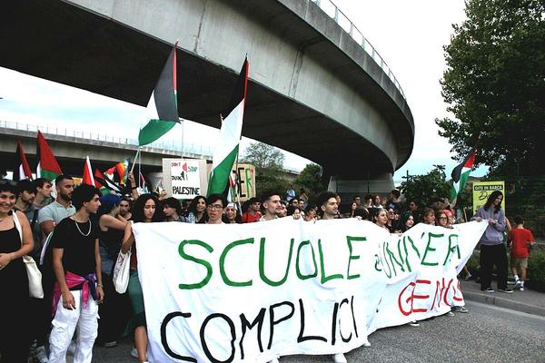 Banner Image: Rete degli Studenti Medi (High School Students’ Network) carries a banner accusing schools and universities of complicity in genocide at the general strike for Gaza in Ancona, Italy, September 2025. Wikimedia Commons. |