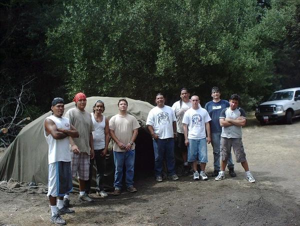 “Group photo finished sweat lodge…. Mostly Yokuts and Miwoks.” Photo by Darin