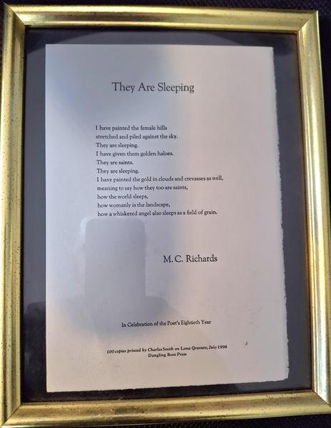 “They Are Sleeping,” poem by M.C. Richards. From Imagine Inventing Yellow: The Life and Work of M.C. Richards, (Worcester Center for Crafts, 1999), p. 35