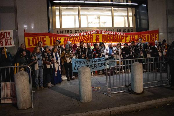 Interfaith action: “Faith Leaders Blockade and Shut Down ICE Field Office, San Francisco, December 16, 2025” Photo by Peg Hunter, on Flickr. |