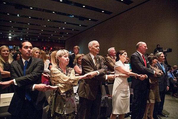 Handbook for the 2024 Election Banner image: “We Shall Overcome” is a classic song of the Civil Rights Movement, sung here at the Civil Rights Summit on April 10, 2014. Pictured are: Julián Castro, Pamela Horowitz, Julian Bond, Luci Baines Johnson, Ian Turpin, Graciela Cigarroa, and Francisco Cigarroa. Photo by David Hume