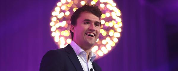 Banner Image: Far right-wing white Christian nationalist speaker Charlie Kirk with apparent halo