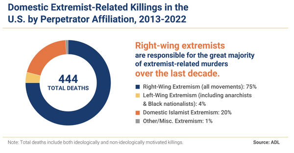 Who was committing extremist-related killings, 2013-2022? From a report by the Jewish Anti-Defamation League. |