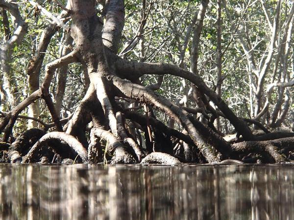 Mangrove roots above water, Stradbroke Island, Queensland, Australia. Photo by Ken Krauss for U.S. Geological Survey. Public Domain. |
