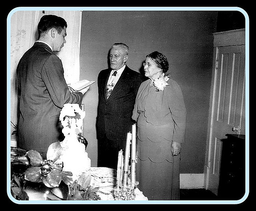 A lifelong promise: an elder couple renews their marriage vows on their 60th wedding anniversary, led by their son. Photo by Ginny Baker, on Flickr. | A vow can be pronounced — I believe — only after you have felt the call to be that kind of person that the vow describes. You cannot simply choose this or that vow, as you do in a grocery store. You ought to be called, and your vow is your “yes” response. In everyday life, then, your vow becomes a powerful tool. |