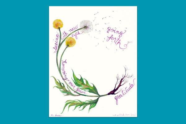 Banner Image: The spiral of The Work That Reconnects. Image gifted by artist Dori Midnight to Joanna Macy, used with permission. From Joanna Macy’s website. |