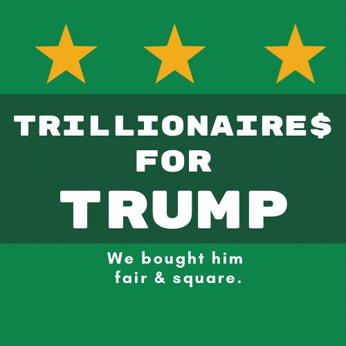 budding trillionaires and Epstein Elites are a persecuted minority in America. But not for long. The trend under MAGA is clear to see. The invitation is signed, “From the Trillionaires for Trump secret lair.” |