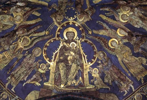 Banner Image: “The Virgin Enthroned,” Mural Hohnekirche, Soest, circa 1120 CE. Wikimedia Commons. |