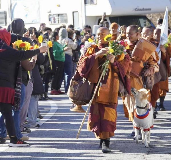 On returning from marching with MLK, Jr. at Selma, Rabbi Heschel told his daughter that “I felt my feet were praying.” A few weeks ago, beginning before America went to war against Iran, without informing the American public why or what for, 23 Buddhist monks set out from Houston, Texas, on a