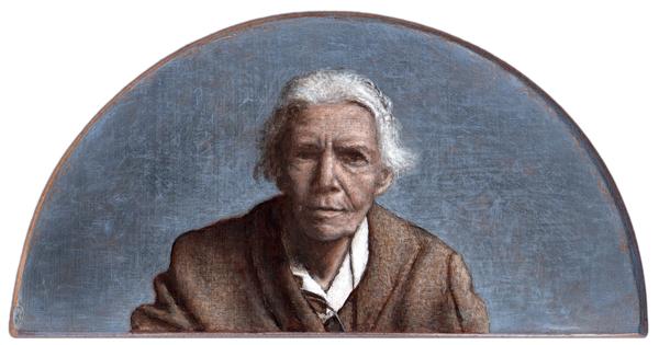 Icon of Dorothy Day recognizing the Christ presence in a homeless man. Image by iconographer Kelly Latimore; used with permission. Purchase HERE. |